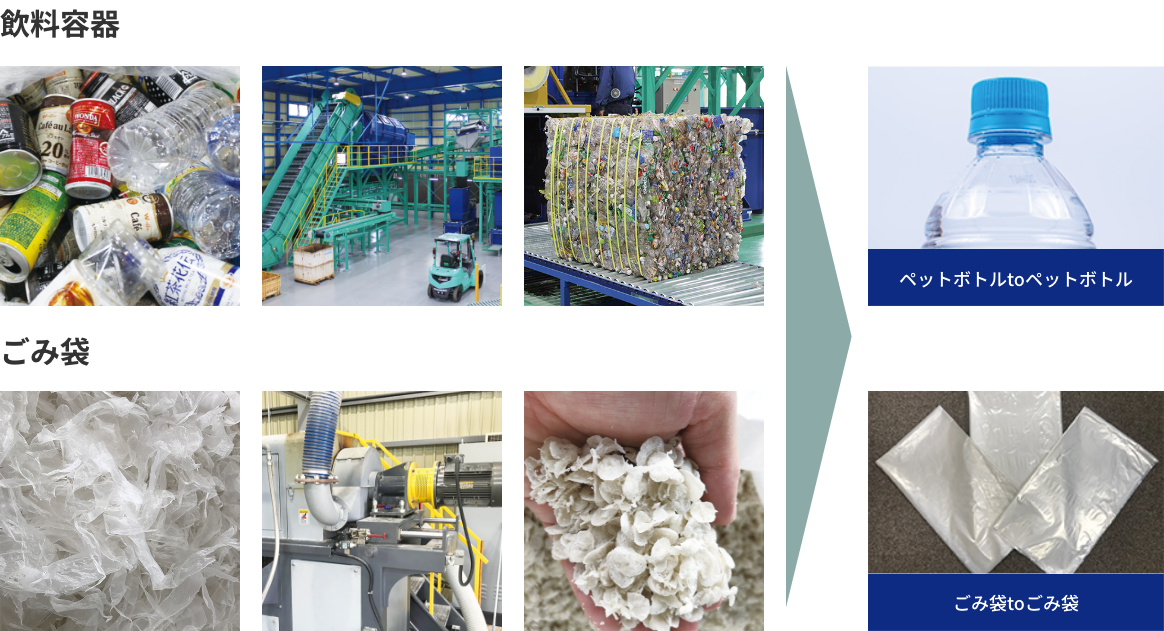 収集運搬業者で、約10社に1社ほどしか自社のリサイクル工場を持たない中、ウム・ヴェルトグループでは7つのリサイクル施設を運営。自社グループ内での「収集運搬」と「リサイクル」の2つを手掛けることで、迅速かつ多様なリサイクルサービスを提供しています。