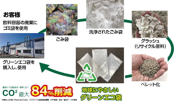 近年加速している「ボトルtoボトル」+業界初の【ゴミ袋toゴミ袋】を実現。