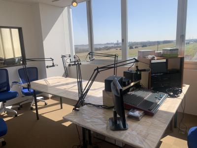 スタジオとなる道の駅かぞわたらせの物産施設2階にはブースが設置され、ミキサーや機材も入り、スタジオらしくなってきました。放送や収録している様子は休憩室側から見学できるようになっています。